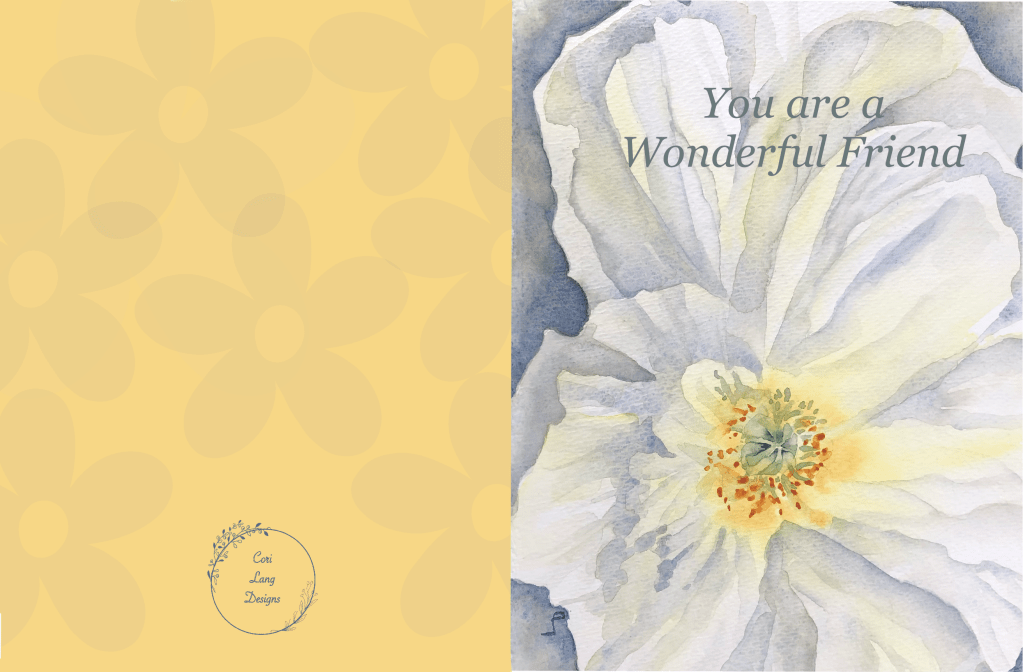 I enjoy the process of using my watercolour paintings to design a card from beginning to end.